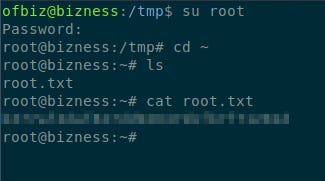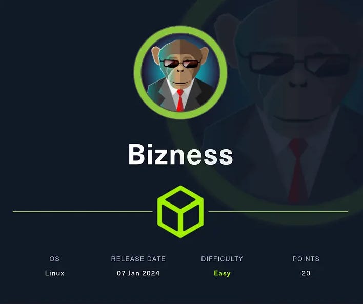 Bizness is an easy box with a relatively convoluted privilege escalation that is not so easy. It involves enumerating a web application running an open-source enterprise resource planning (ERP) system called Apache OFBiz. The ERP has an authentication bypass vulnerability that allows for a subsequent Server-Side Request Forgery (SSRF) vulnerability to be exploited to obtain a reverse shell.