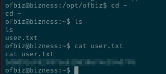 ofbizOnce the reverse-shell is established, it can be upgraded with a simple Python script to improve interactivity.