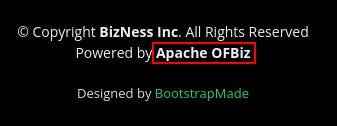 At the bottom of the page, it states Apache OFBiz powers the site.